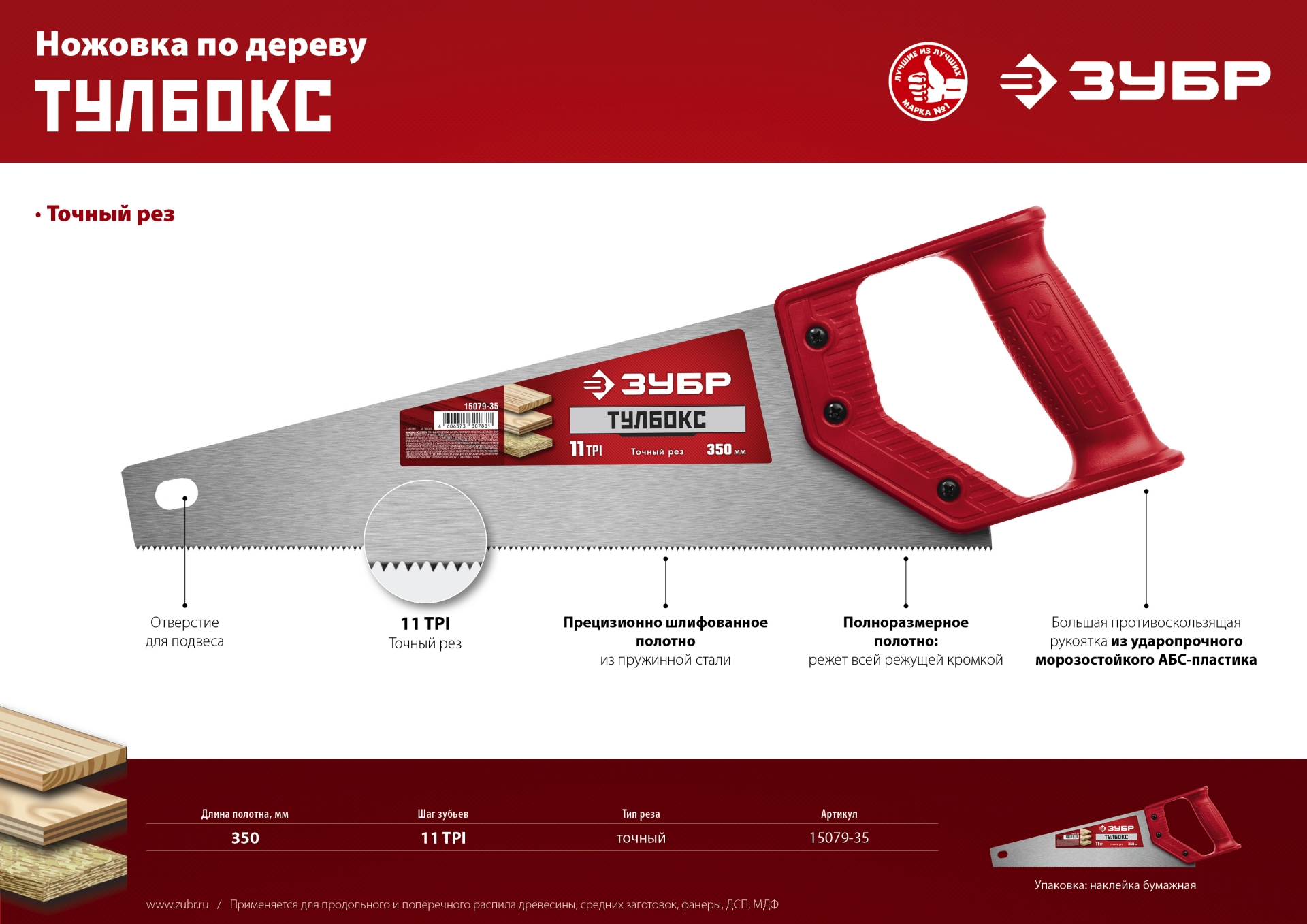 Ножовка по дереву ЗУБР мастер ТУЛБОКС, шаг зубьев 2.3 мм, длина полотна 350 мм (15079-35), ТУЛБОКС