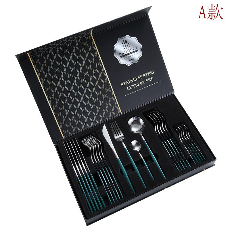 Нож, вилка и ложка из нержавеющей стали, набор из 24 предметов, аэрозольная краска, набор посуды, плоская посуда в западном стиле, подарочная коробка