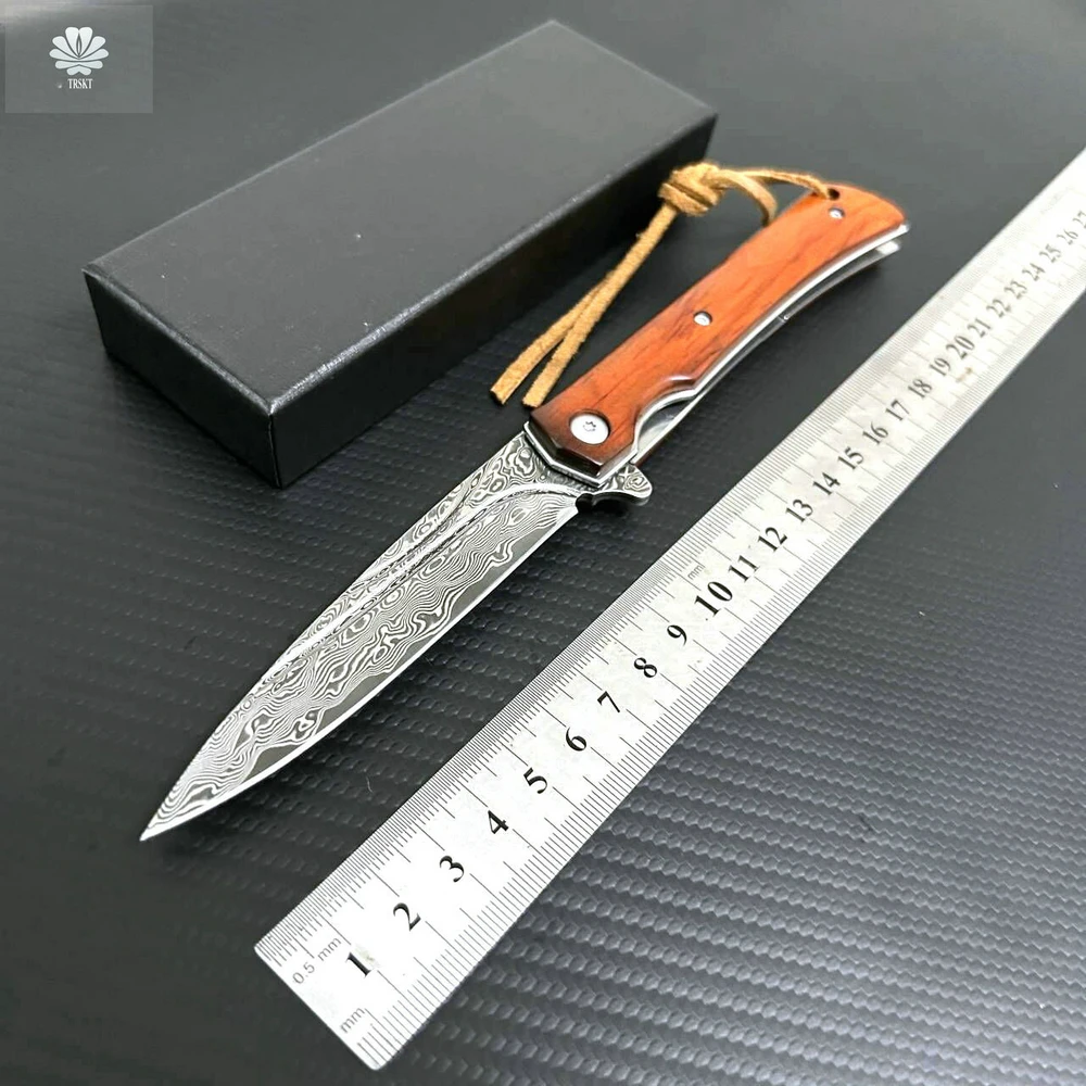 Нож дамасский Trskt, складной кухонный Клинок с деревянной ручкой, для кемпинга и выживания на природе