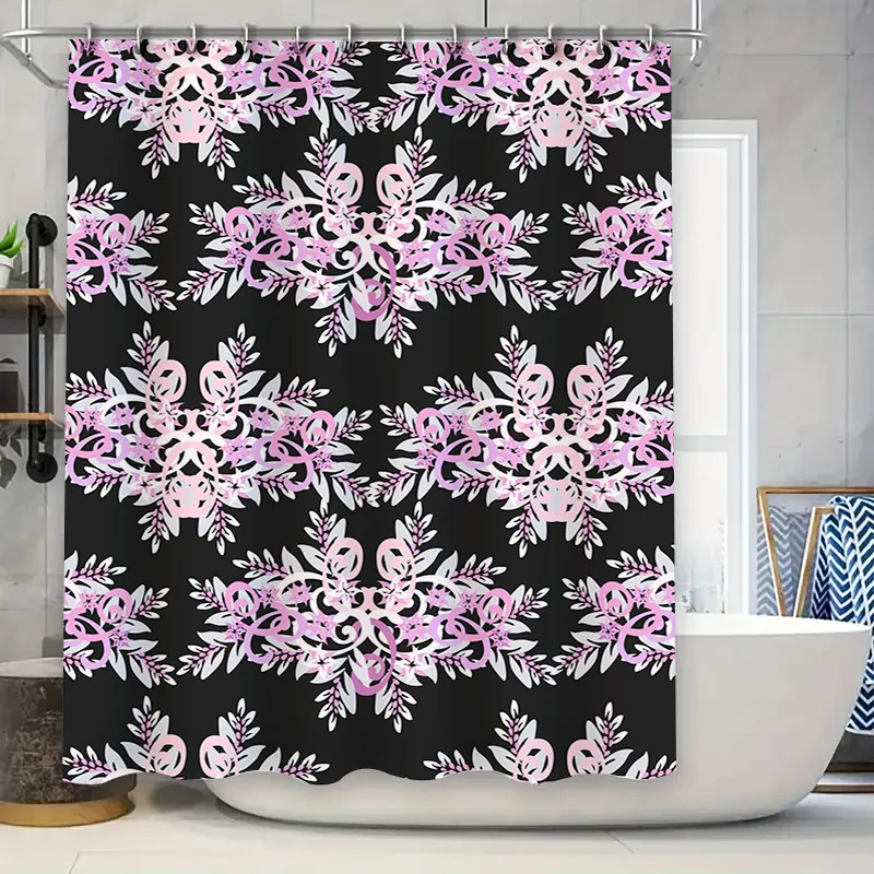 Винтажный зимний комплект занавесок для душа со снежинками и цветочным принтом для декора ванной комнаты, розовая, черная полиэфирная ткань с люверсами.