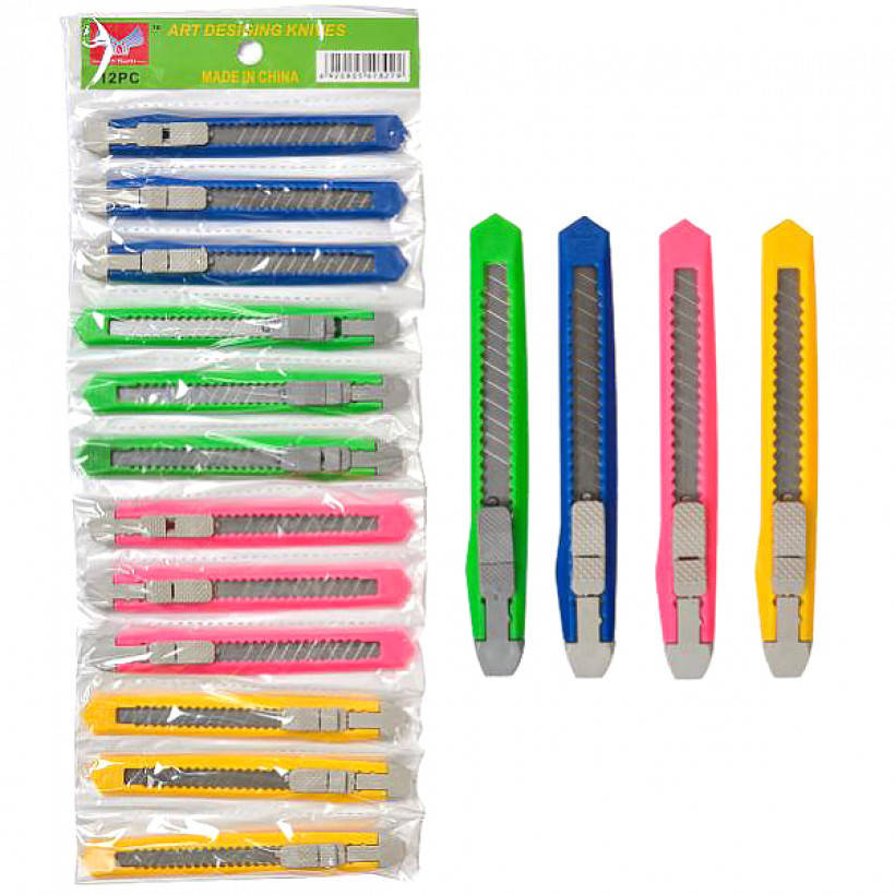 Пластиковый корпус 13*2см, малое лезвие 9мм. Пластиковый автоматический фиксатор лезвия.