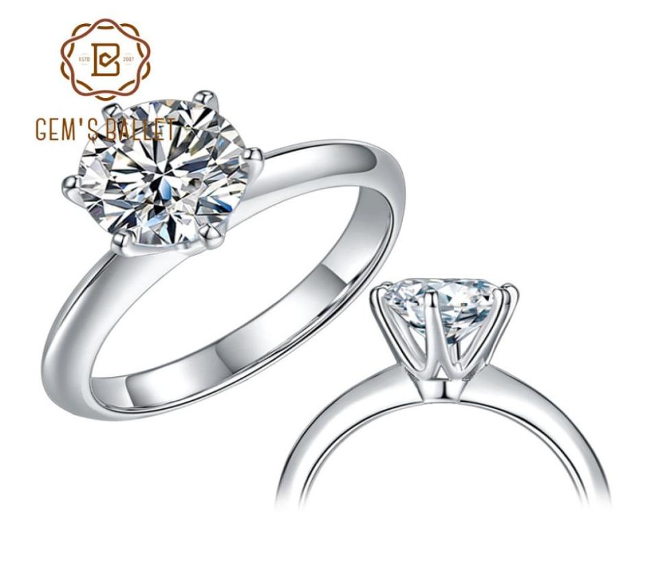 GEM039S BALLET 925 Sterling Silver Ring 1ct 2ct 3ct Round Moissanite Diamond Solitaire Engagement Rings For Women6037827