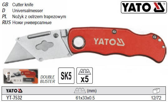 YATO-7532 - профессиональный универсальный складной нож трапецевидной формы.