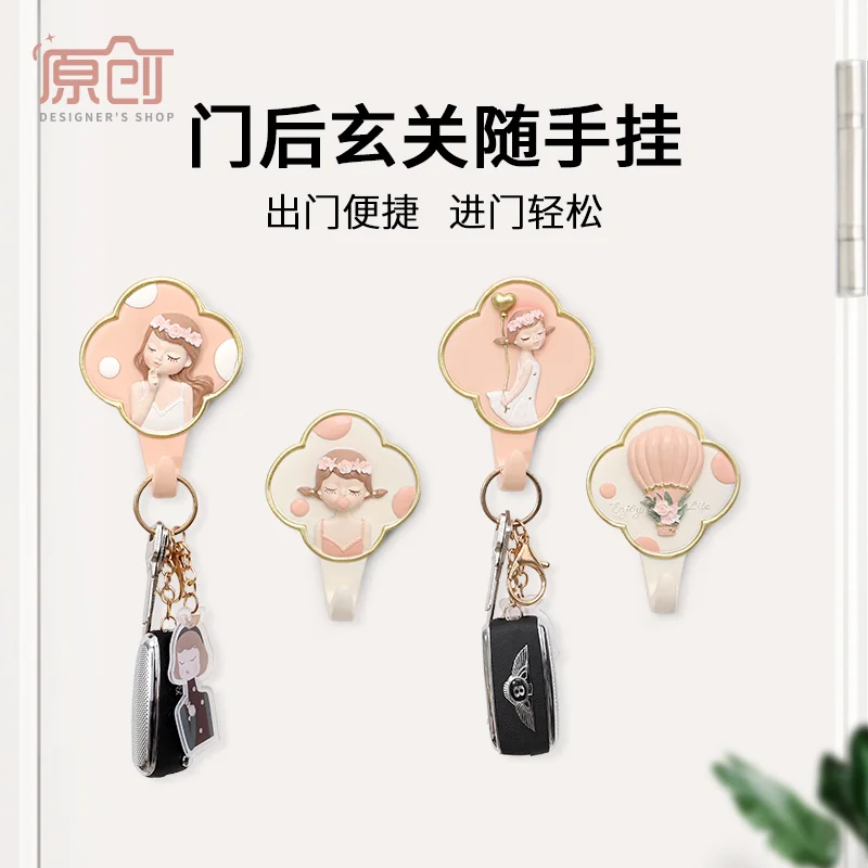 Нордическая Декоративная вешалка для девочек для хранения входных ключей, крючок для хранения одежды без отверстий, вешалка для одежды из к...