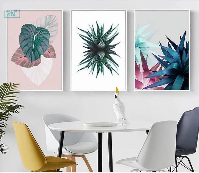 Нордическая Минималистичная картина, зеленые листья, Настенная картина, холст, художественный принт, украшение для дома для гостиной, без р...