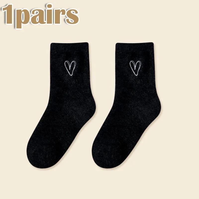 Норковые бархатные носки женские милые уютные мохнатые осенне-зимние теплые чулочно-носочные изделия утолщенные плюшевые носки для сна на полу пушистые белые носки в форме сердца One Size