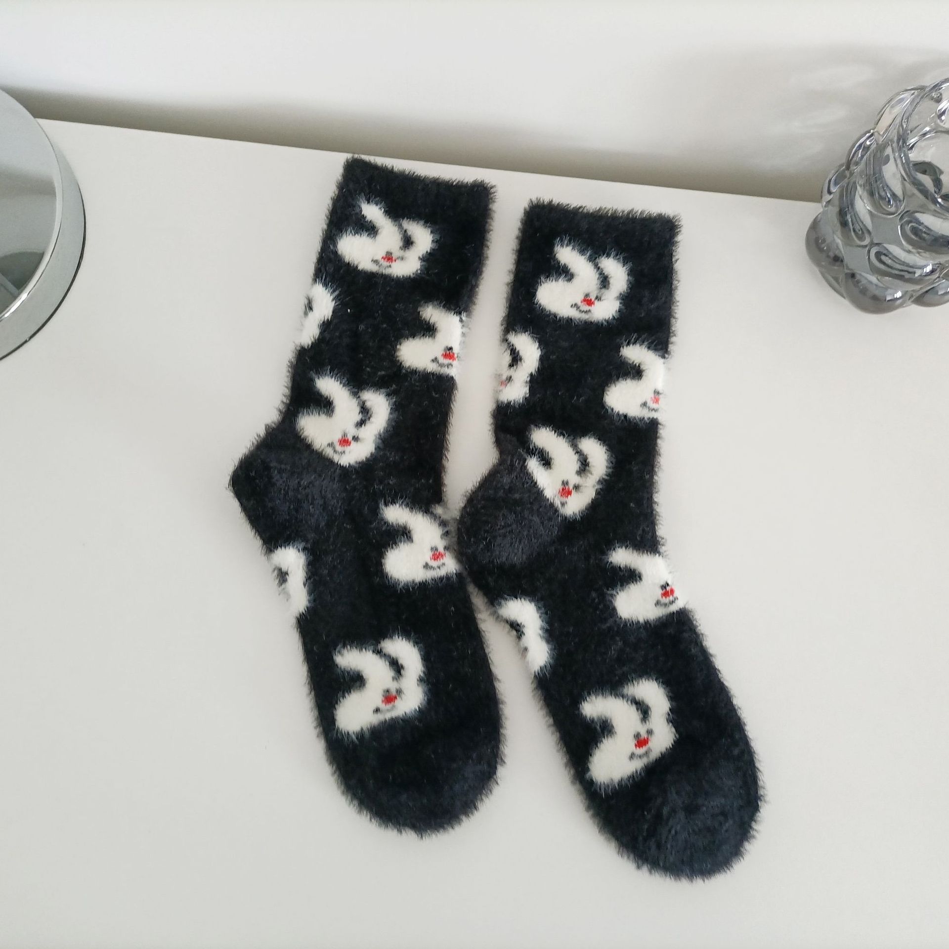 Норковые бархатные носки женские осенне-зимние с рисунком кролика из мультфильма «Вишня», мягкие кавайные, милые, утолщенные, термальные, коралловые, бархатные, для сна, плюшевые, носки-тапочки One Size