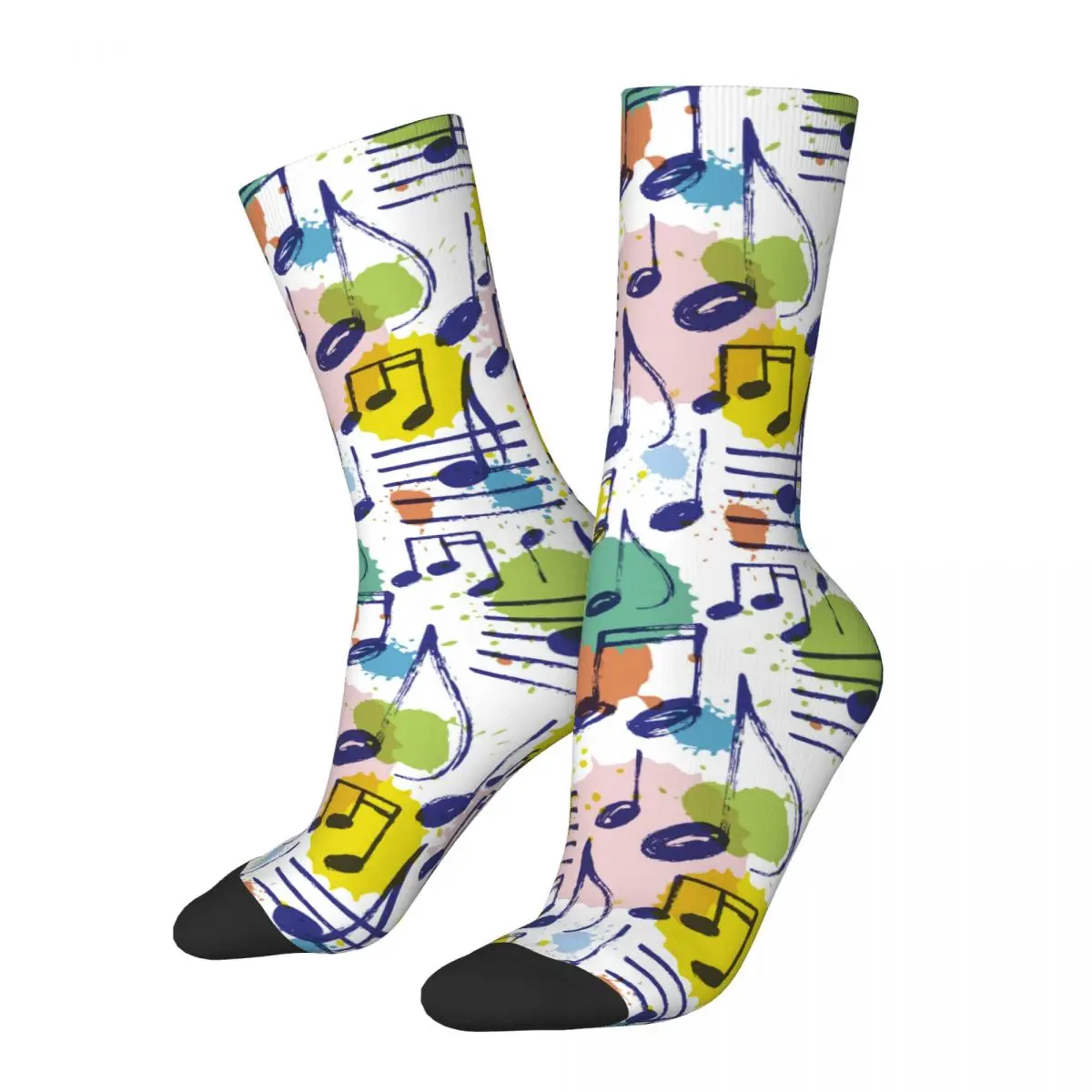 Носки баскетбольные цветные из полиэстера для мужчин и женщин, повседневные милые, Нескользящие, с рисунком музыкальных заметок, средней длины