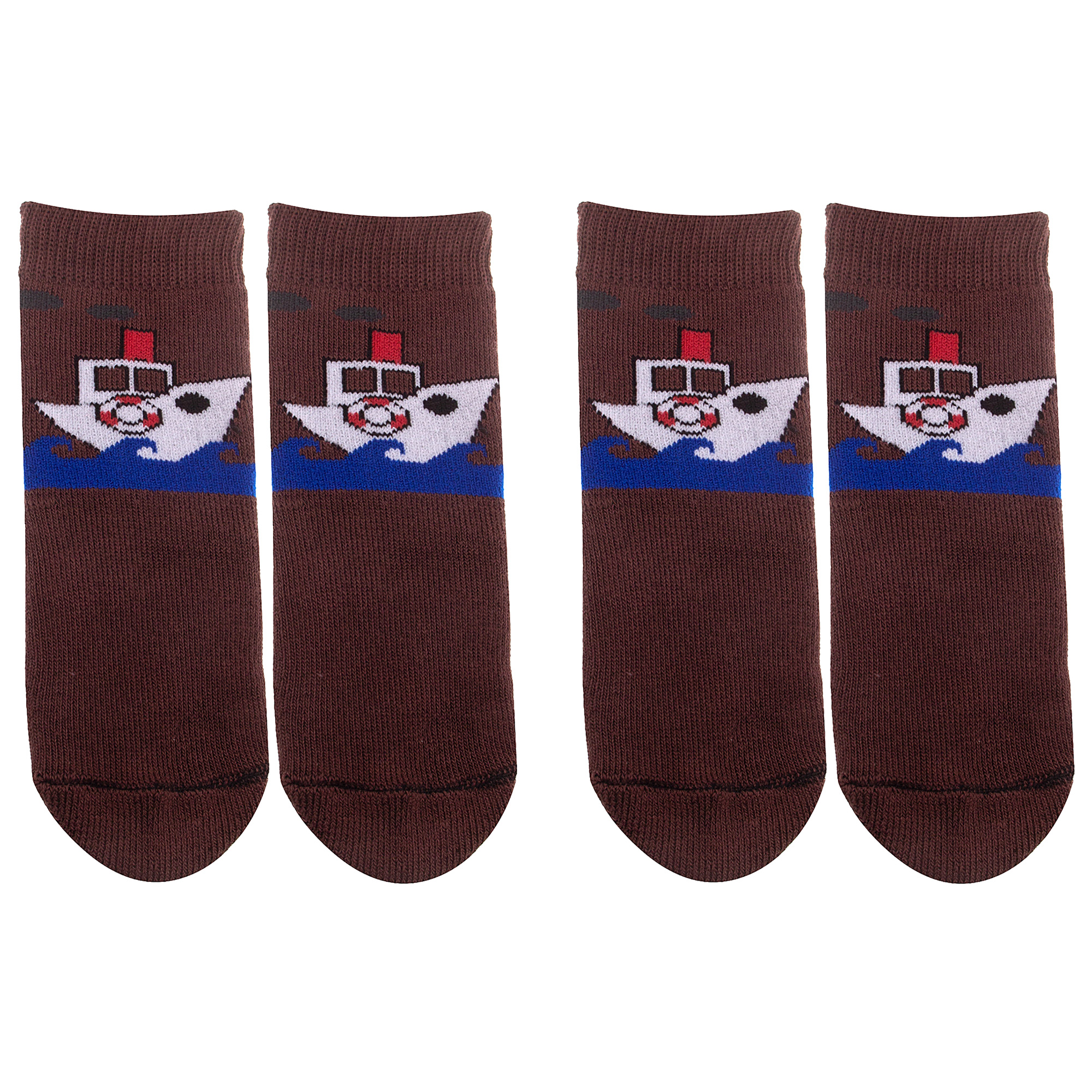 Комплект детских носков из 2 пар, межсезонные или зимние, укороченные, цвет коричневый, теплые, с принтом, махровые, состав: 98% хлопок, 1.5% эластан, 0.5% полиамид, арт. 2-С108. Производитель "ООО Альтаир, г. Орск, Оренбургская обл, Россия" под брендом "Альтаир".