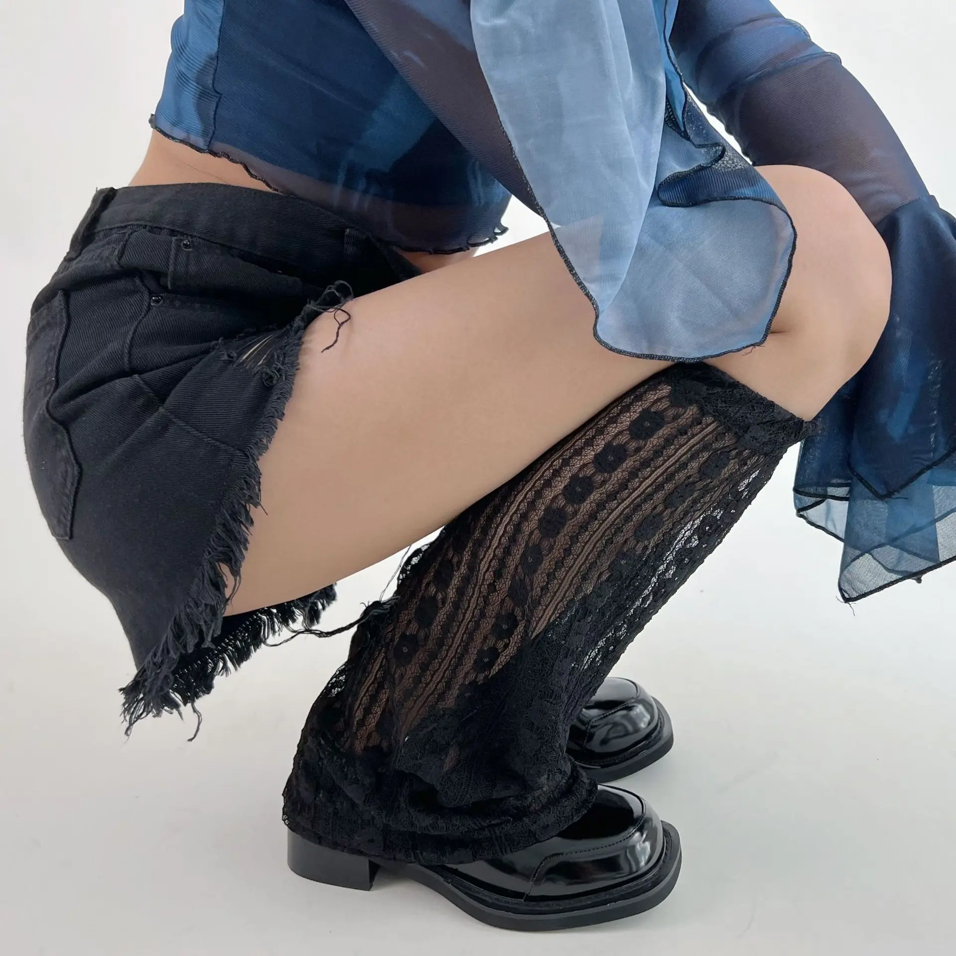 Носки женские, кружевные, летние, черные, тонкие, Y2k, с носки до бедер от комаров