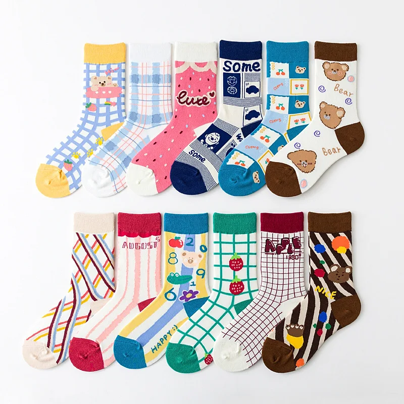 Носки женские летние носки средней длины носки милые женские носки с мультяшным рисунком в Корейском стиле