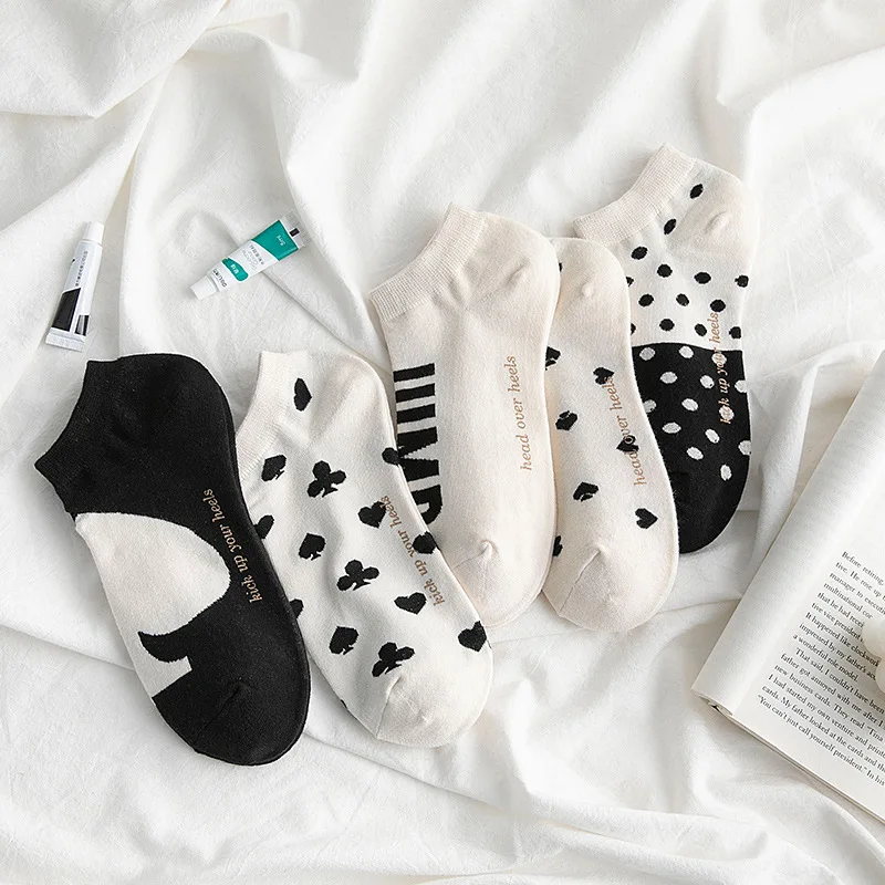 Носки женские повседневные в стиле Харадзюку, милые короткие носки в горошек с надписью Love, весна-лето