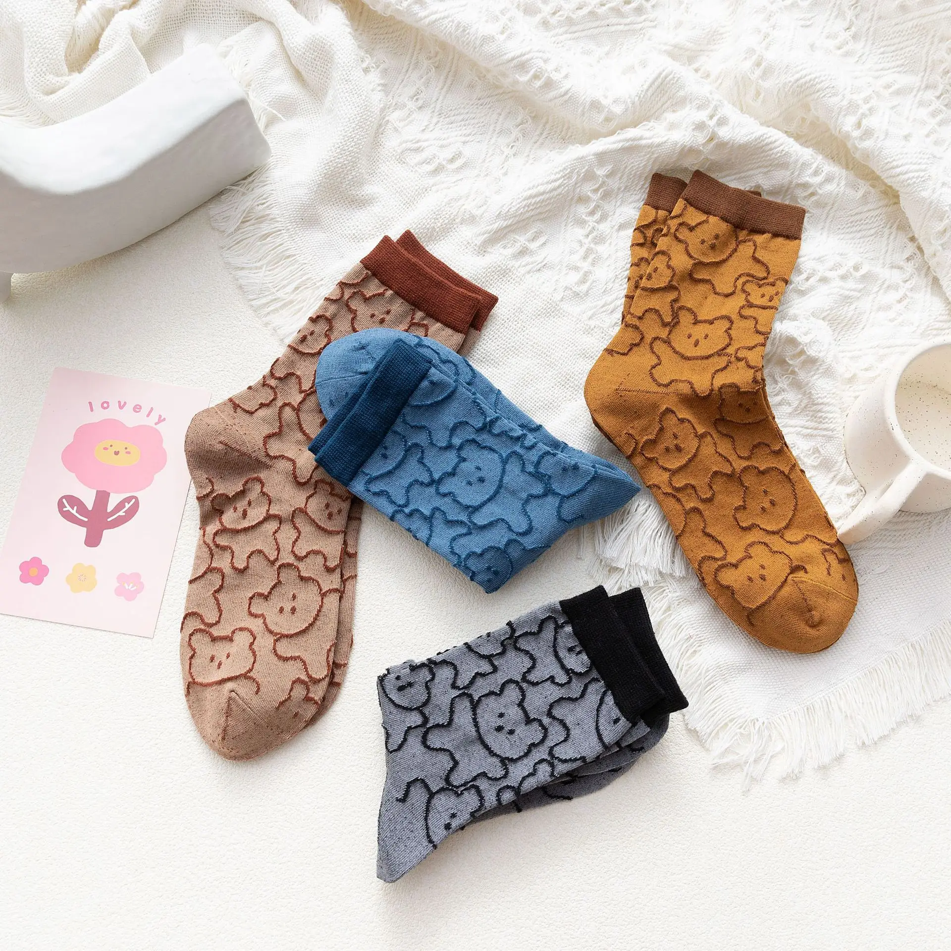 Носки женские с забавным рисунком медведя, повседневные Длинные Короткие носки до щиколотки, комплект для девочек с мультяшными животными, ...