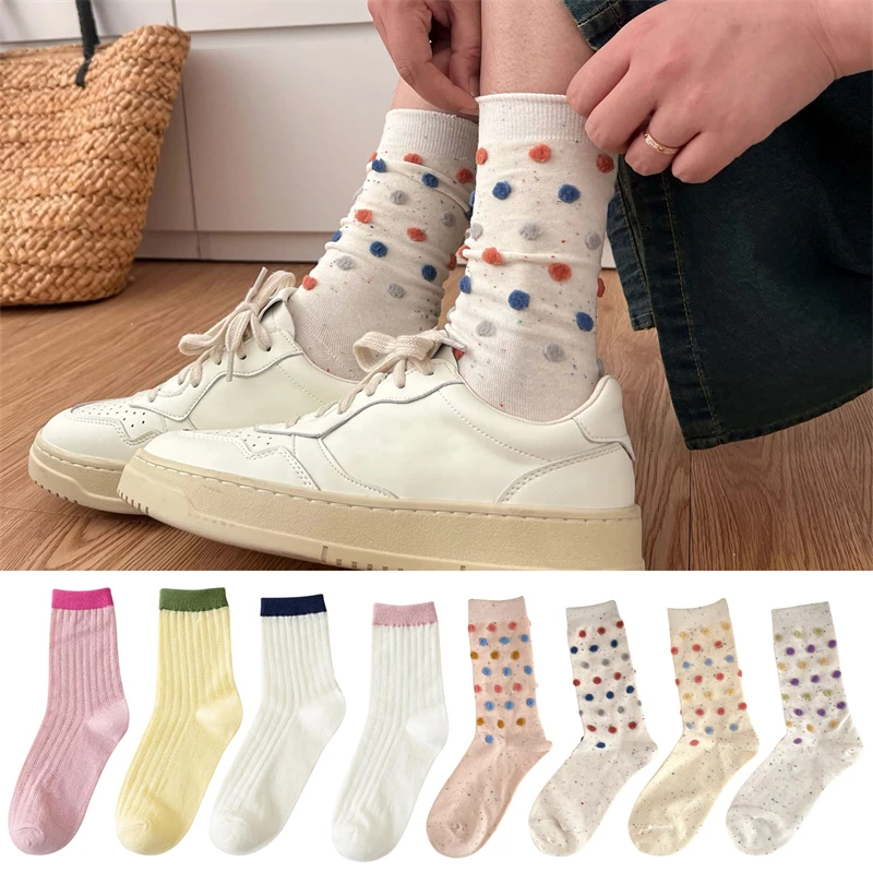 Носки женские хлопковые средней длины, винтажные милые и Удобные однотонные хаки с допаминовым узором в горошек и цветами, милые, для весны и лета
