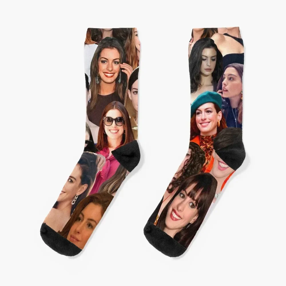 Носки-коллажи Anne Hathaway с фотографиями подарок на Хэллоуин Рождество мужские носки женские