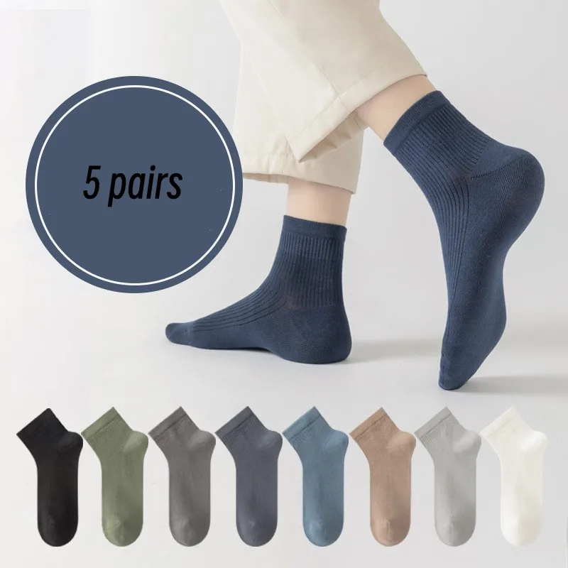 Носки мужские тонкие дышащие однотонные, хлопковые короткие деловые, 5 пар, летние