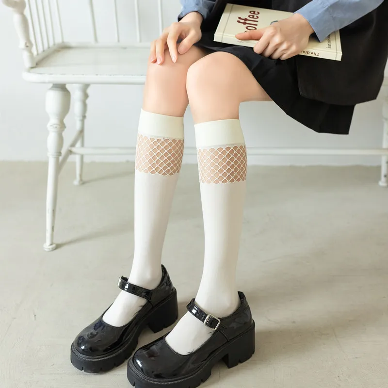 Носки-трубы, сетчатые носки для рыбалки с прострочкой, тонкие обтягивающие женские модные женские носки выше колена в стиле колледжа