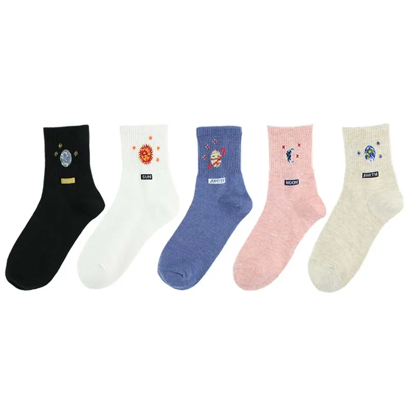 Носки Skarpetki, теплые, носки женские Харадзюку, с рисунком солнца, луны, звезд, женские носки