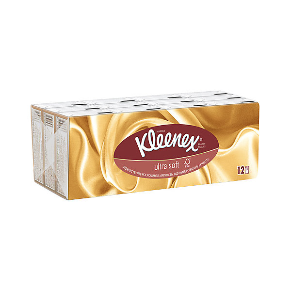 Носовые платочки Kleenex Ultrasoft, упаковка 12 штук, Разноцветный