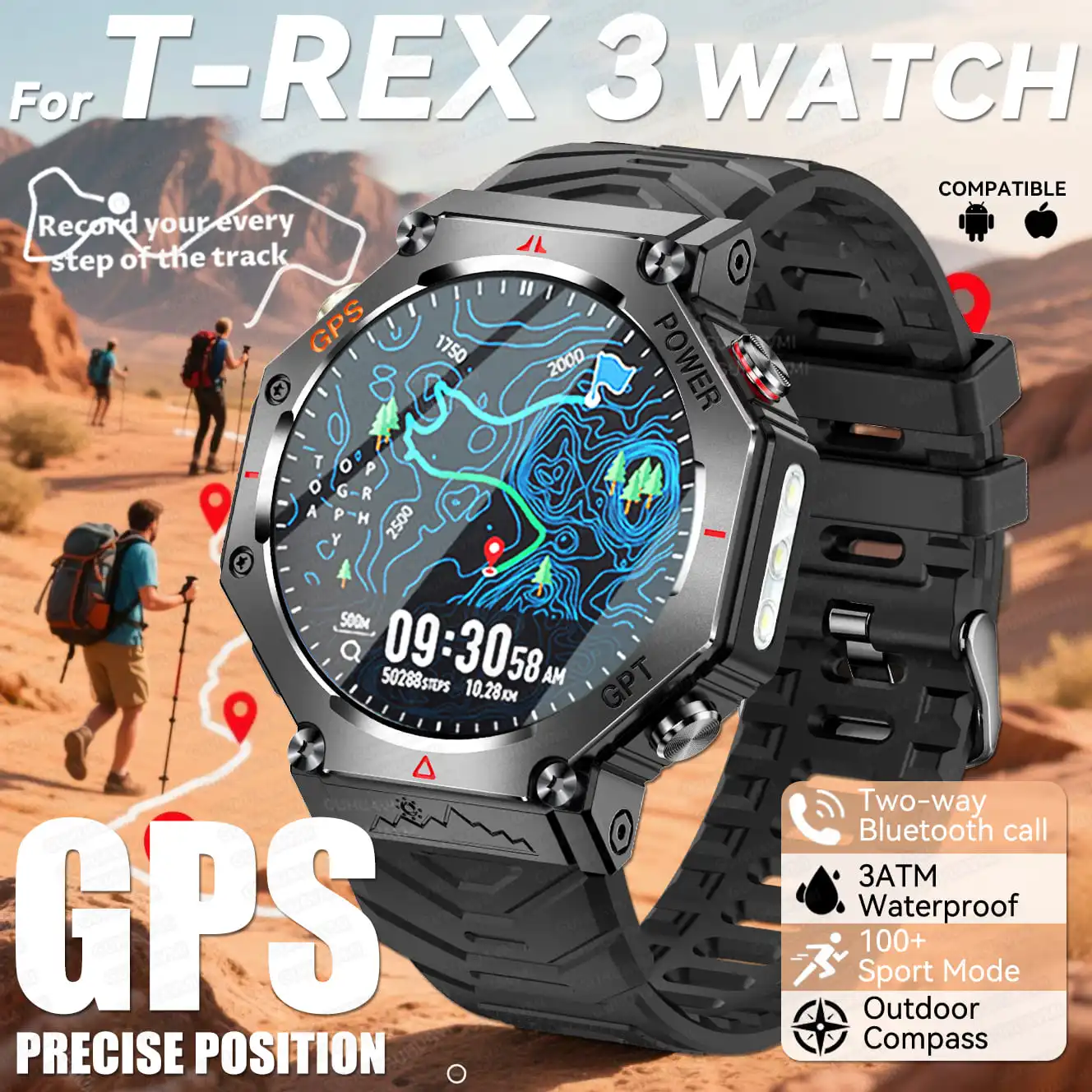 Новинка для T-Rex 3, военные умные часы с GPS-позицией, мужские 3 атм, водонепроницаемые, Bluetooth, компас для вызова, альтиметр, SWIM, умные часы для женщин
