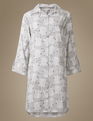 Ночная рубашка из чистого хлопка с воротником и пуговицами