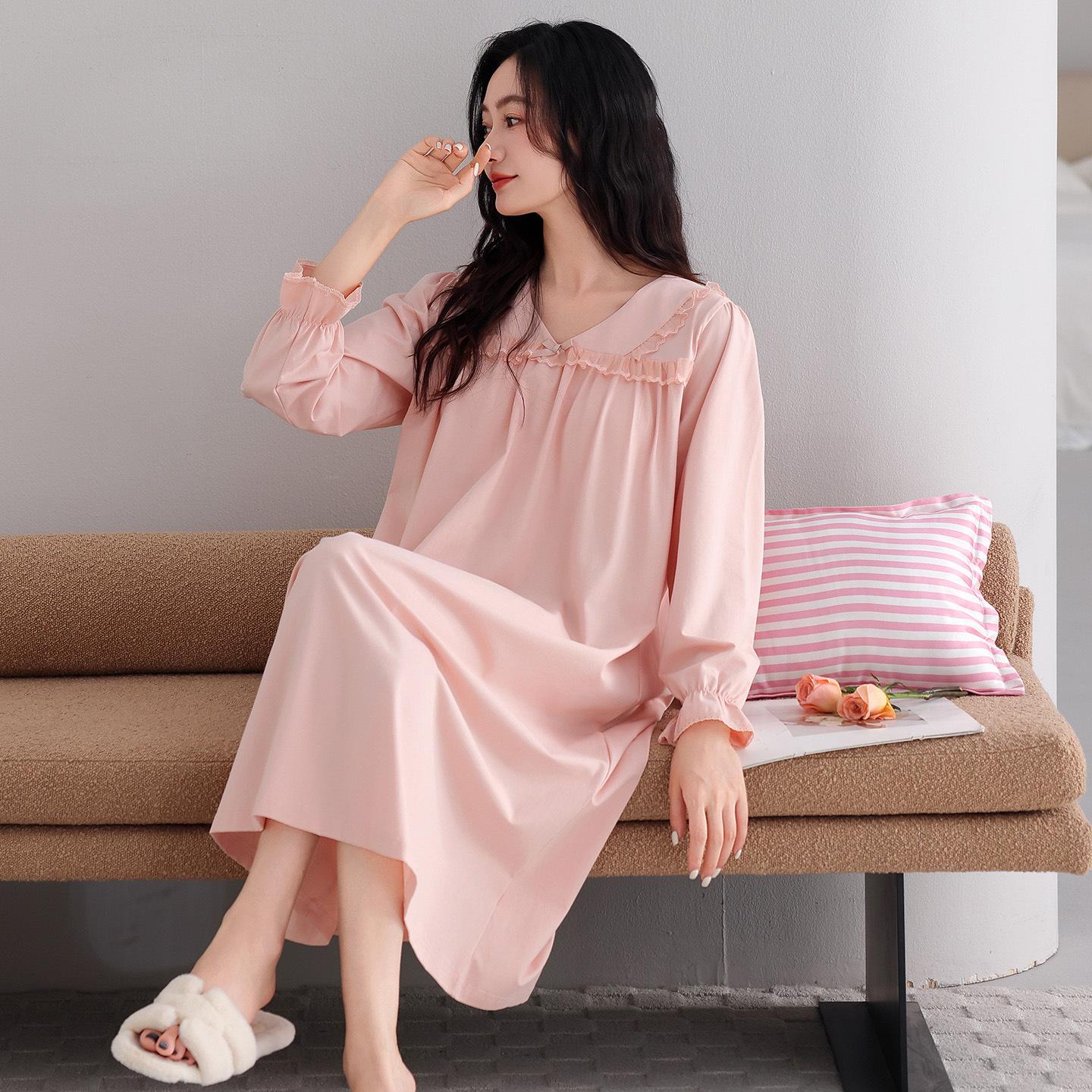Ночная сорочка с нагрудными вкладышами Женская Весенне-осенняя из чистого хлопка с длинным рукавом Осенняя Женская Тонкая Повседневная Женская Домашняя одежда 2XL