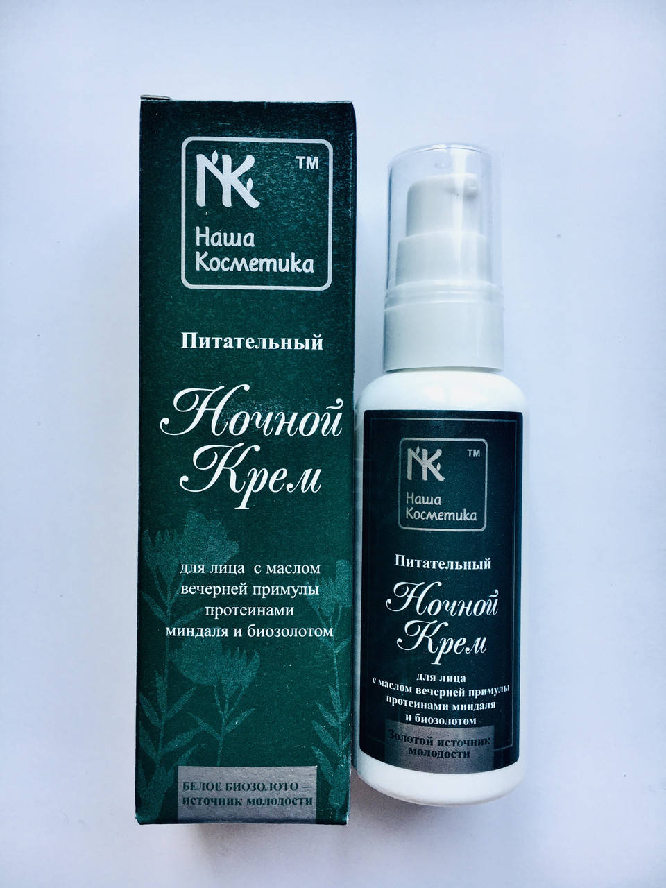 Крем для лица "Ночной" Питательный с маслом вечерней примулы, протеинами миндаля и биозолотом. ТМ "Наша косметика"