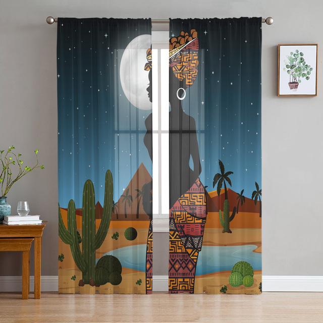 Ночь пустыни, этническая африканская женщина, прозрачные шторы для гостиной, шторы для спальни, кухни, тюлевые шторы, обработка окон 1 PCS W100XH250cm