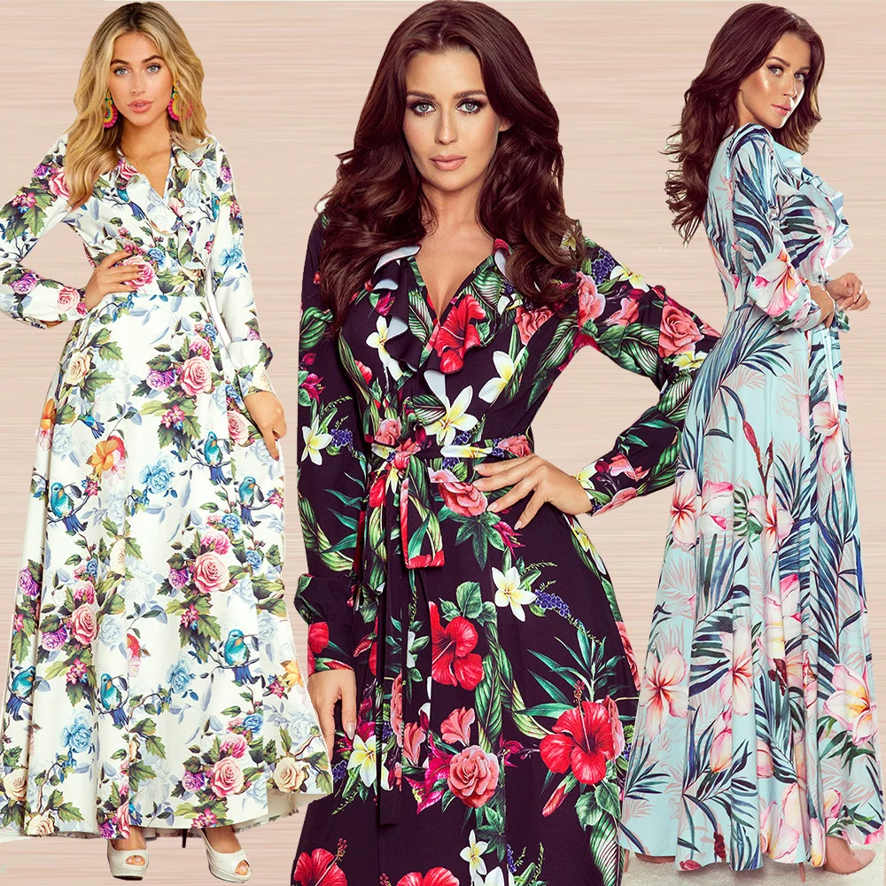 Облегающее Цветочное платье с длинным рукавом, платье на шнуровке, новинка 2021