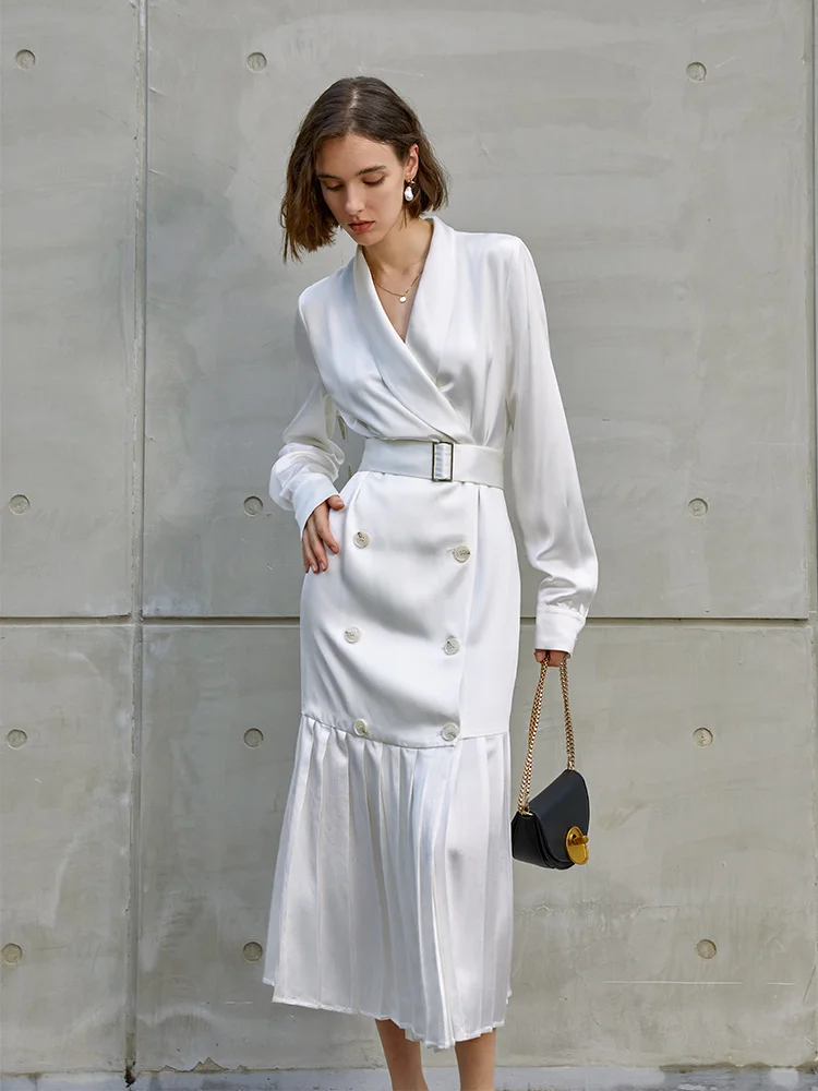 Облегающее ацетатное белое платье премиум-класса, Новинка лета 2023, платье с запахом и длинным рукавом