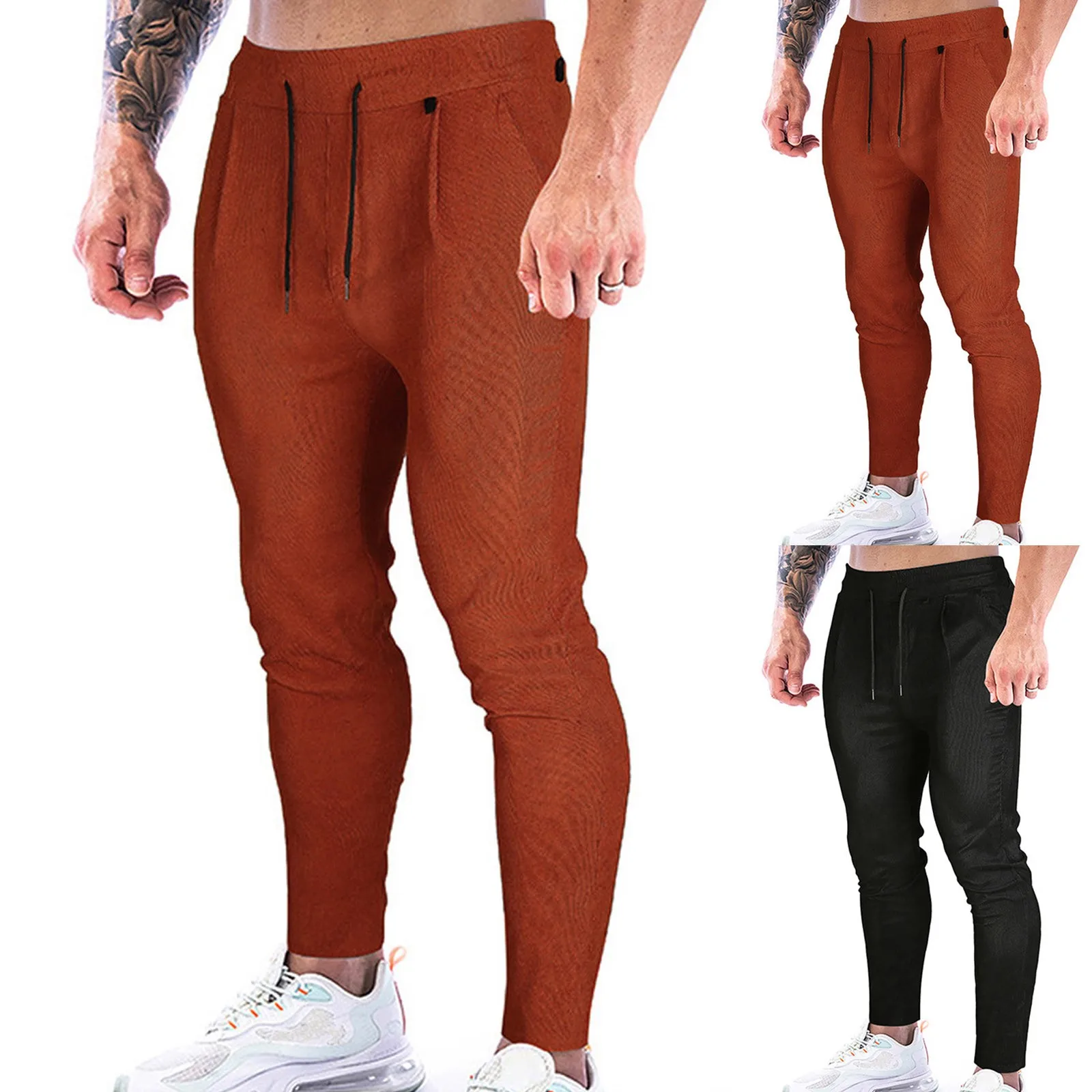 Облегающие спортивные брюки, мужские спортивные повседневные штаны с карманами для йоги, Джоггеры со средней талией, мужские брюки