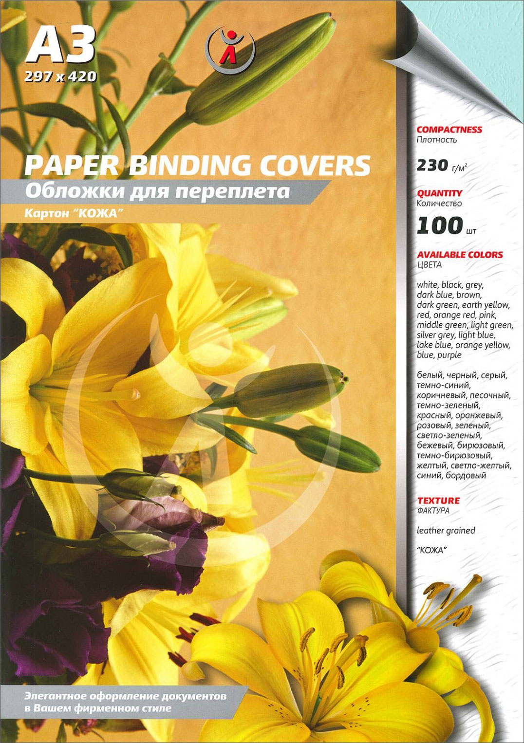 Обложки для переплета A3, картон, 230г/м², 100шт., светло-голубой, тиснение под кожу, Реалист (8662)