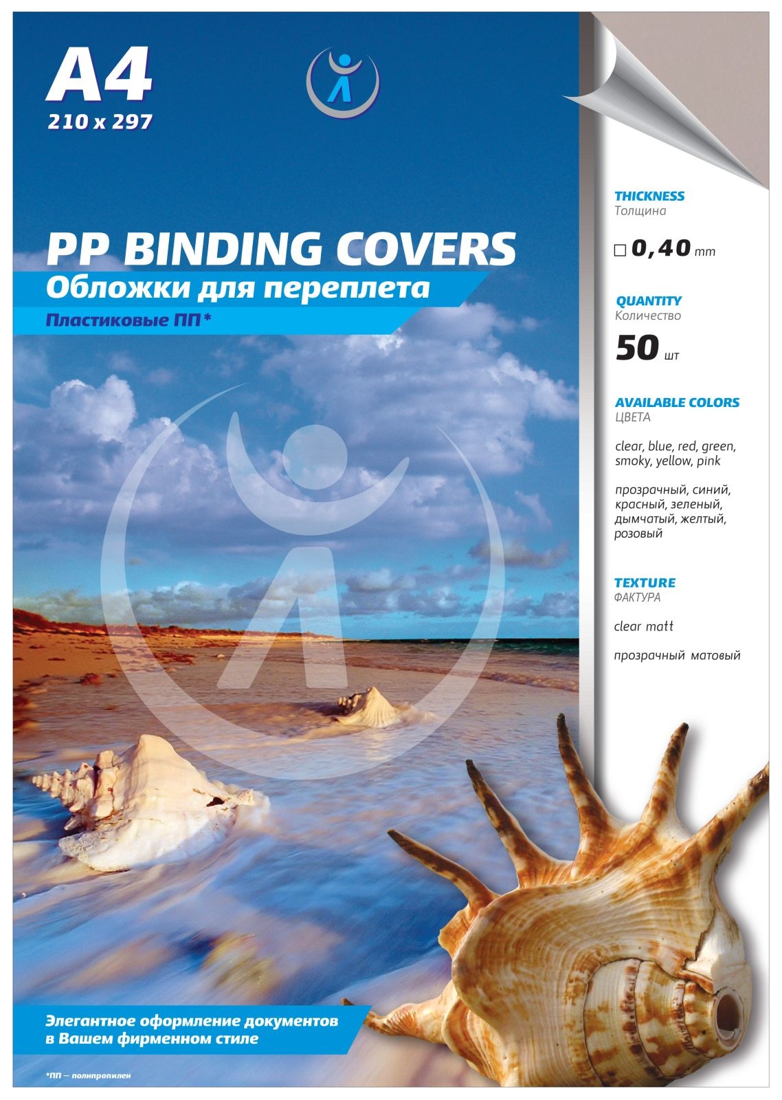 Обложки для переплета A4, Полипропилен, 0.4мм, 50шт., прозрачно-дымчатые, матовые, Реалист (5440)