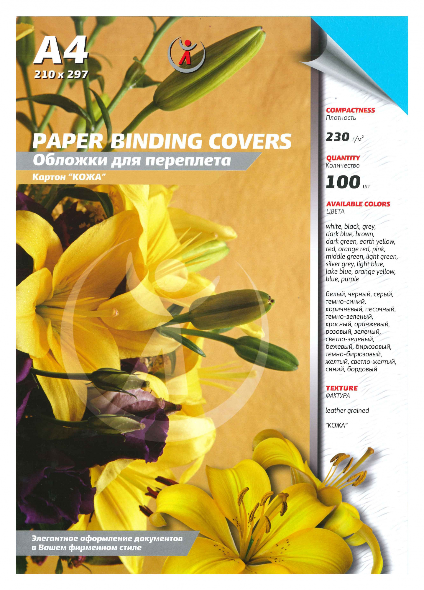 Обложки для переплета A4, картон, 230г/м², 100шт., синий морской, тиснение под кожу, Реалист (8665)