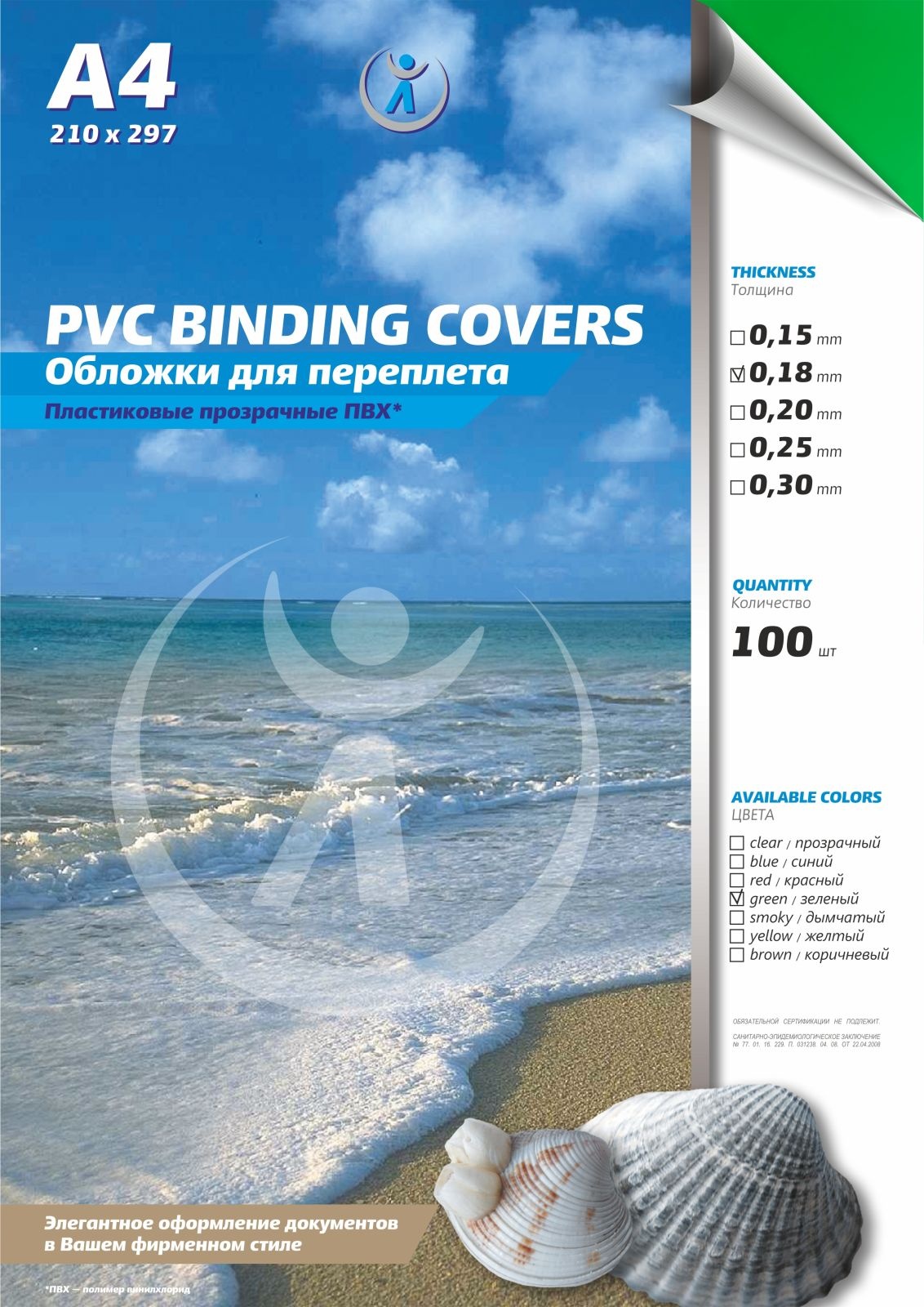 Обложки для переплета A4, пвх, 0.18мм, 100шт., зеленые, прозрачные, Реалист (3641), Зеленый