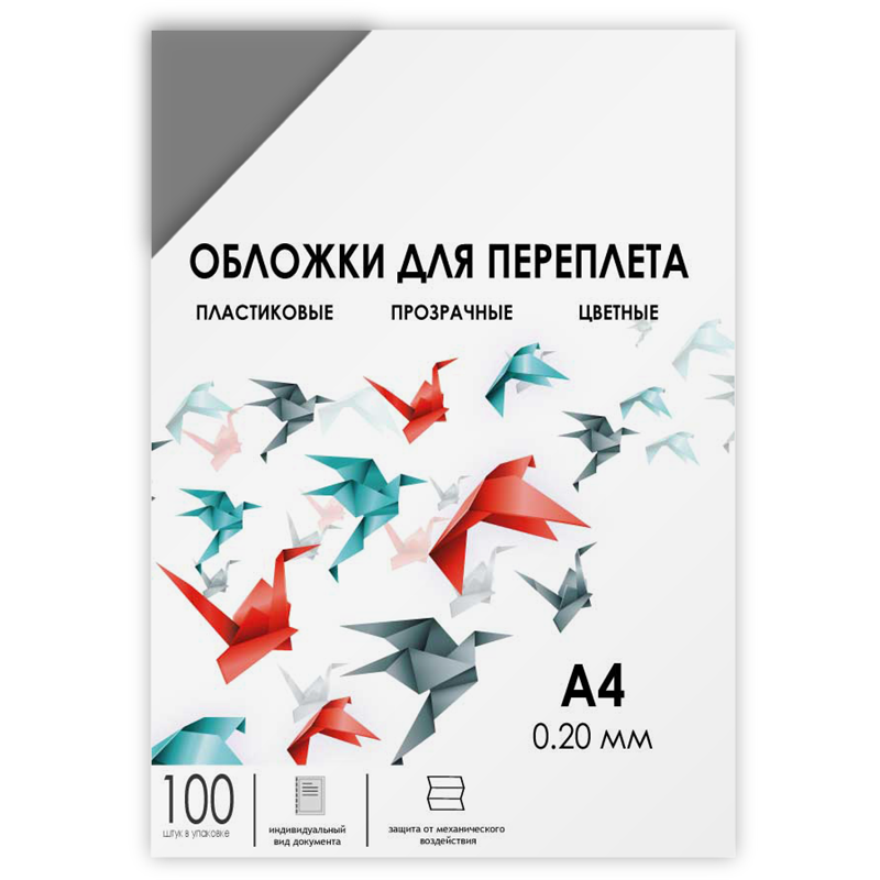 Обложки для переплета A4, пластик, 200 мкм, 100 шт., дымчатые, прозрачные, ГЕЛЕОС (PCA4-200S), Дымчатый
