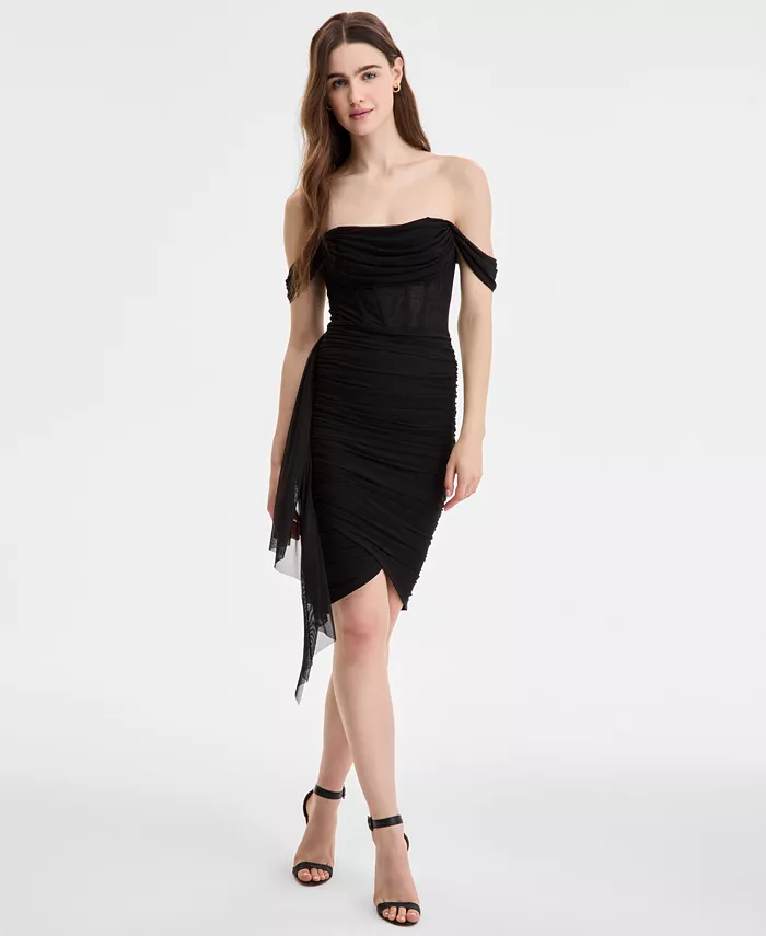 Женское платье с открытыми плечами и корсетом из сетки Juniors City Studios, черный