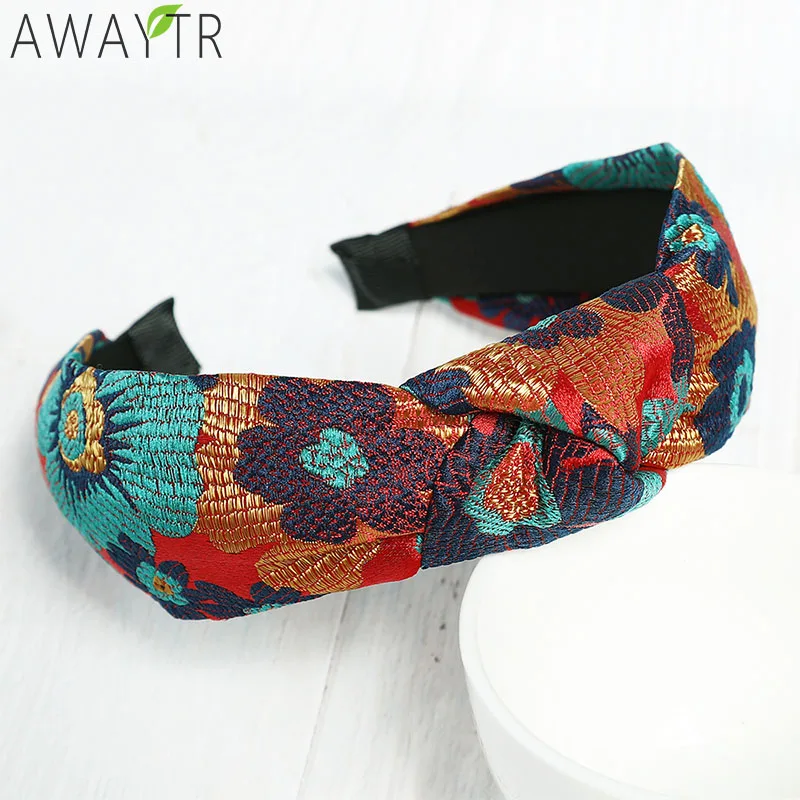 Ободок для волос Женский, винтажная эластичная Цветочная лента с перекрестным узлом, аксессуар для волос