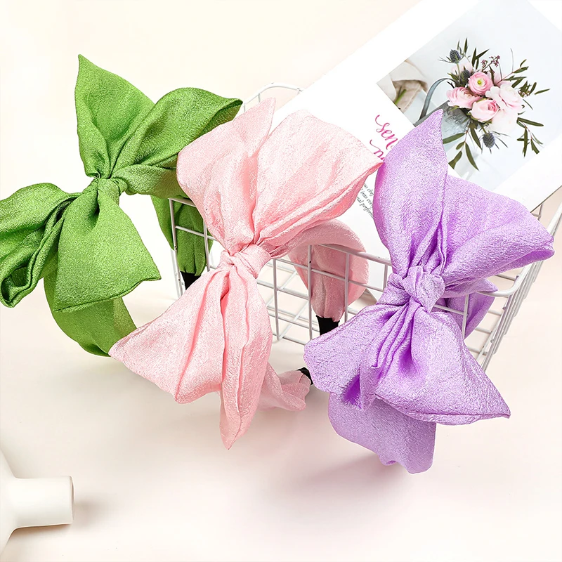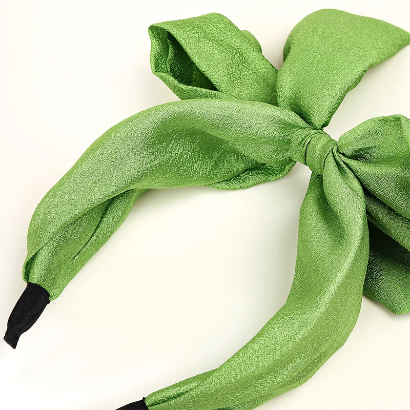 Ободок для волос женский с большим бантом, винтажная широкая повязка на голову, зелёный аксессуар на голову