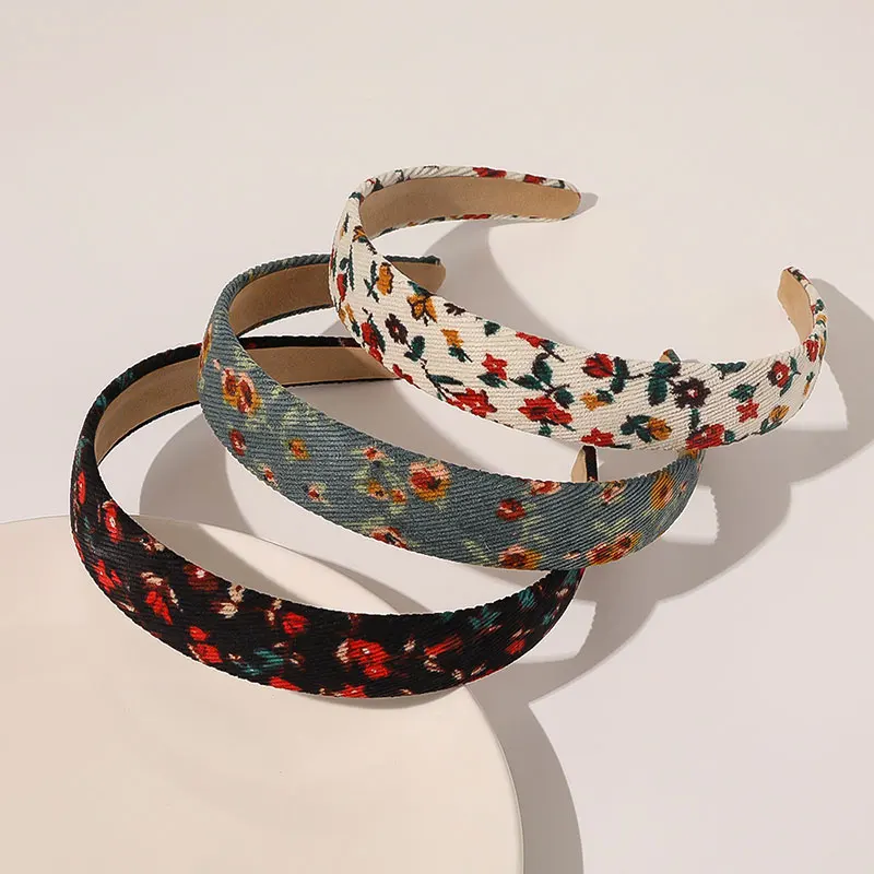 Ободок для волос женский с цветочным принтом, модный винтажный однотонный обруч в клетку и полоску, аксессуар в Корейском стиле