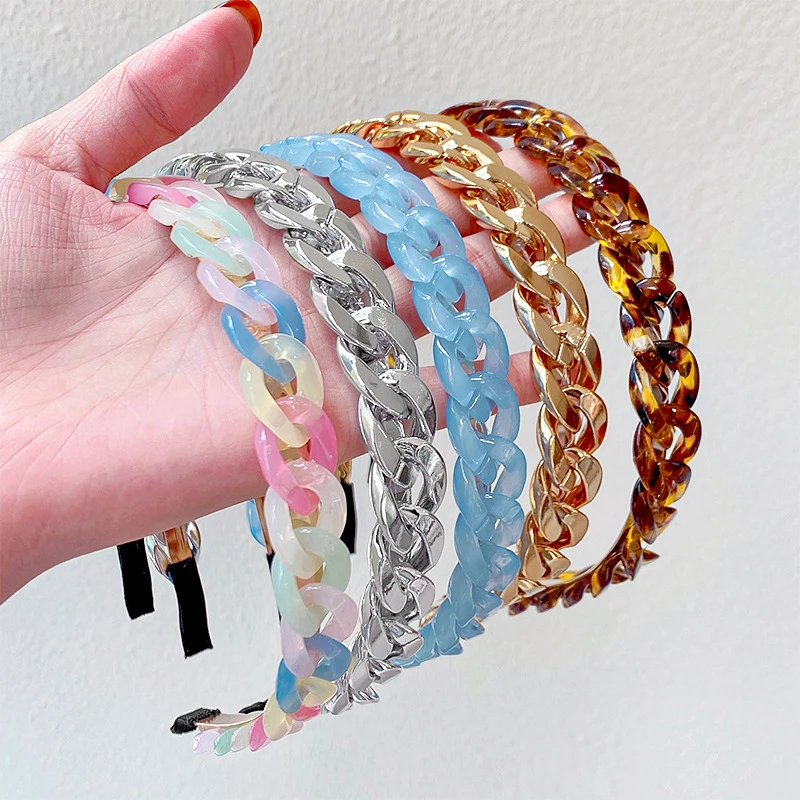 Обруч для волос Прозрачный Женский, Модный ободок с цепочкой из смолы, цветной ободок, аксессуары для волос для девушек