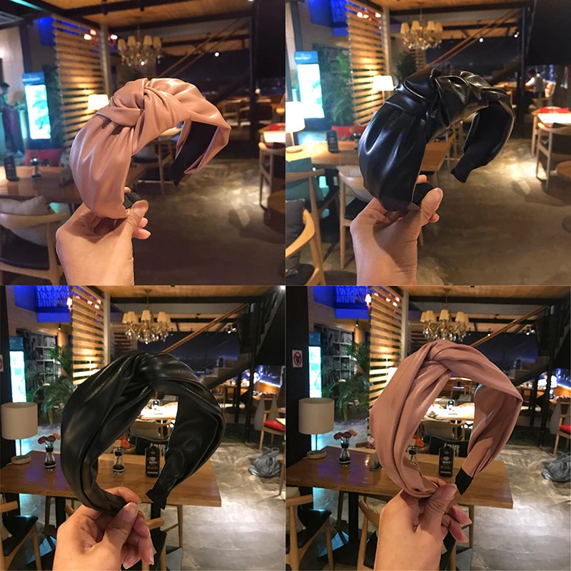 Обруч для волос из искусственной кожи Женский, Модный ободок с перехлёстом, с сетчатым бантом, модный шикарный ободок