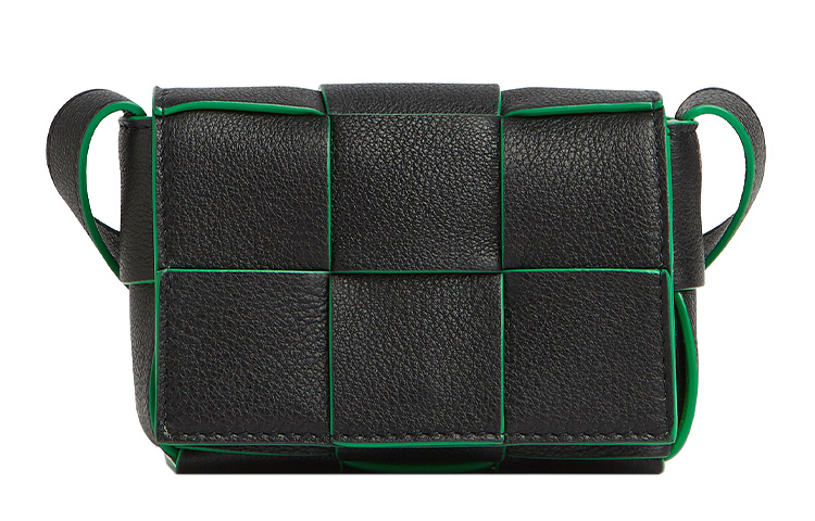CASSETTE Кожаная наплечная сумка, мини-кроссбоди женская черная и попугай зеленая Bottega Veneta