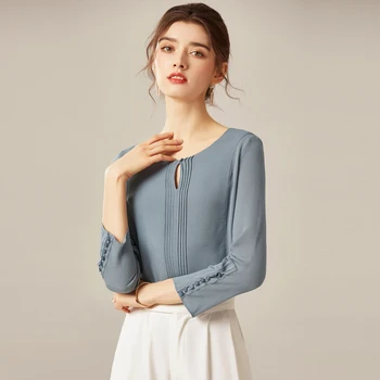 100% Silk Women's Shirt O Neck Long Sleeves Striped Fashion Elegant Blouse Autumn Quality Tops