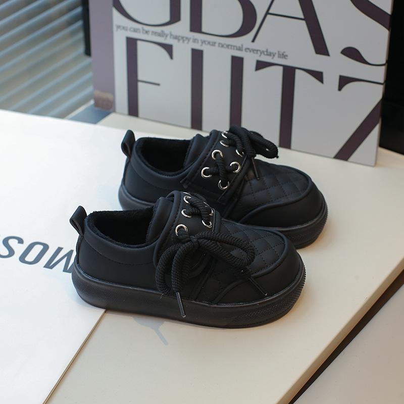 Обувь для девочек из хлопка, детская плюшевая утолщенная повседневная обувь, модная теплая спортивная обувь для малышей, мягкие удобные зимние детские кроссовки 23 чёрный