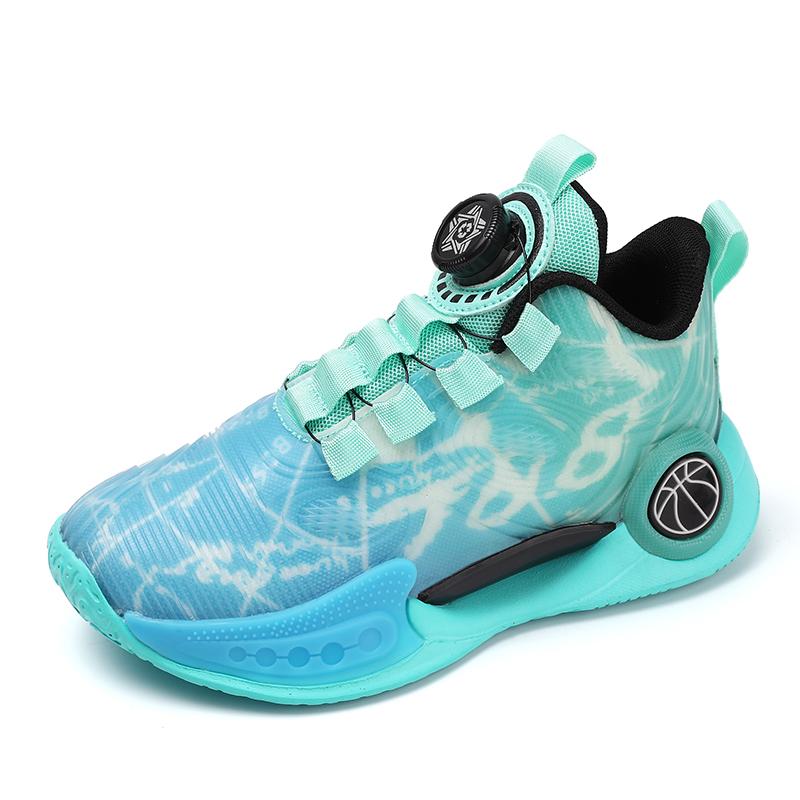 Обувь для мальчиков, водонепроницаемая спортивная обувь с кожаным верхом, детская баскетбольная обувь с вращающейся пряжкой, амортизация 36