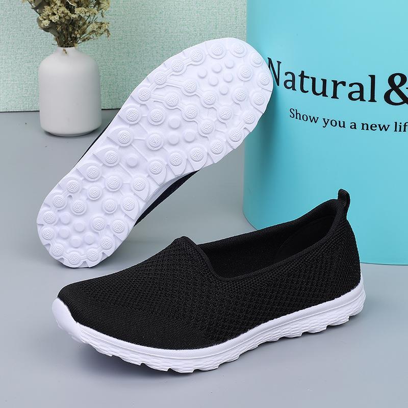 Обувь Foot Lazy Shoes женская летающая плетеная женская обувь с мелким горлом повседневная дышащая плоская подошва одинарные туфли сетчатая обувь на все времена года большой размер 35 чёрный