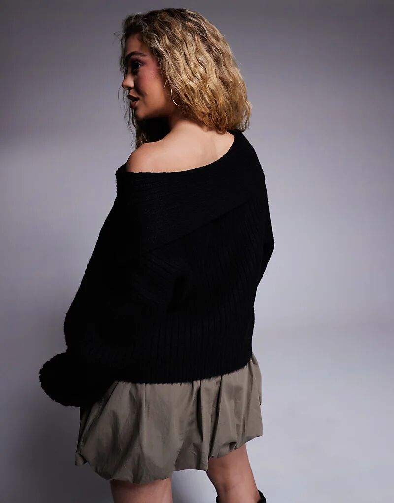Объемный вязаный джемпер с открытыми плечами черного цвета ASOS DESIGN