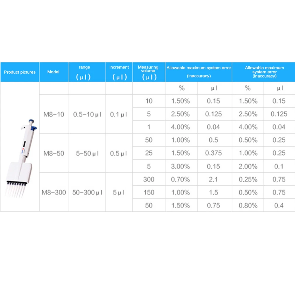 Объем пипетки 8 каналов пипетка Регулируемая лабораторная переносная пипетка инструмент DC156