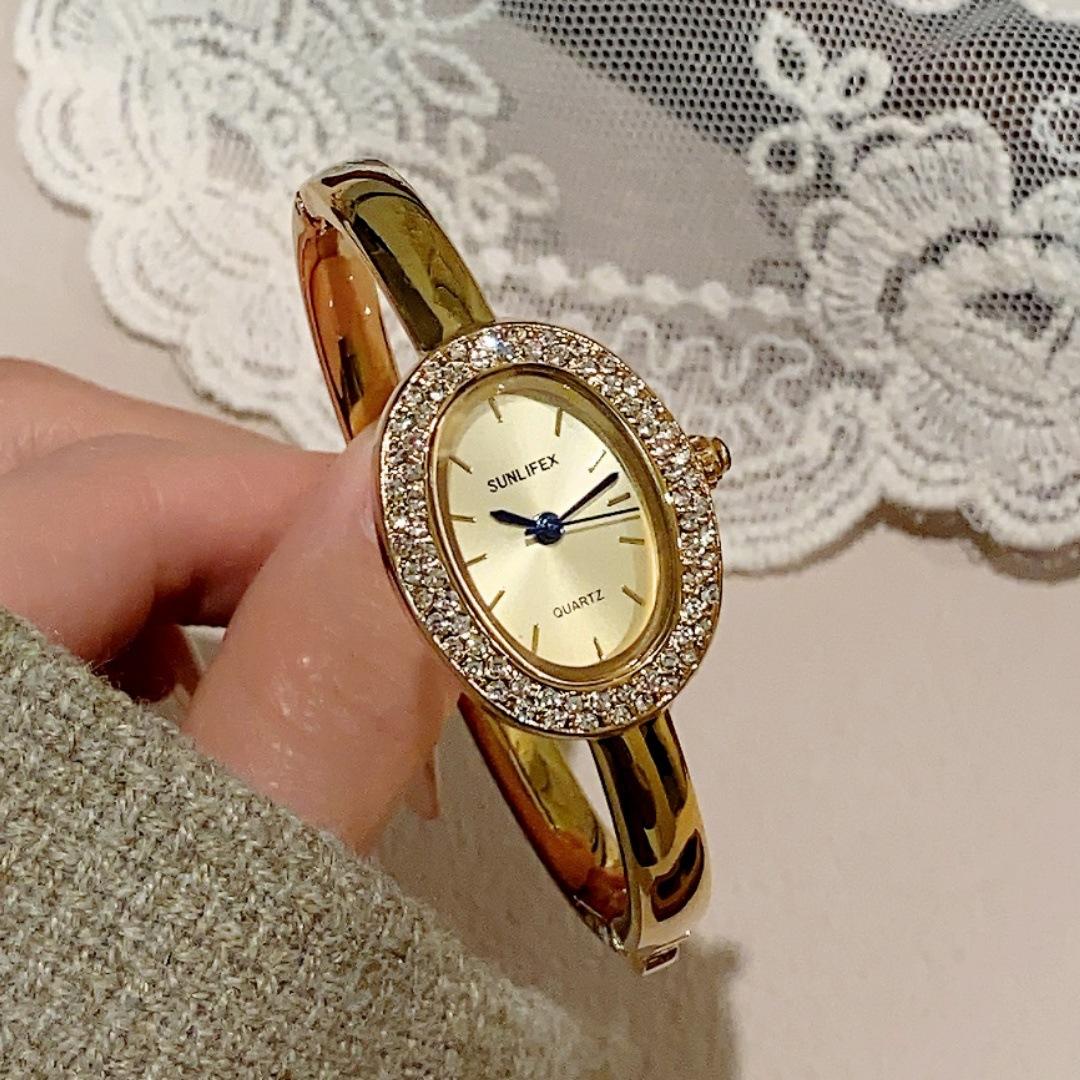 Овальные золотые часы-браслет с римскими цифрами, средние, антикварные, легкая роскошь, высококлассные кварцевые часы для женщин